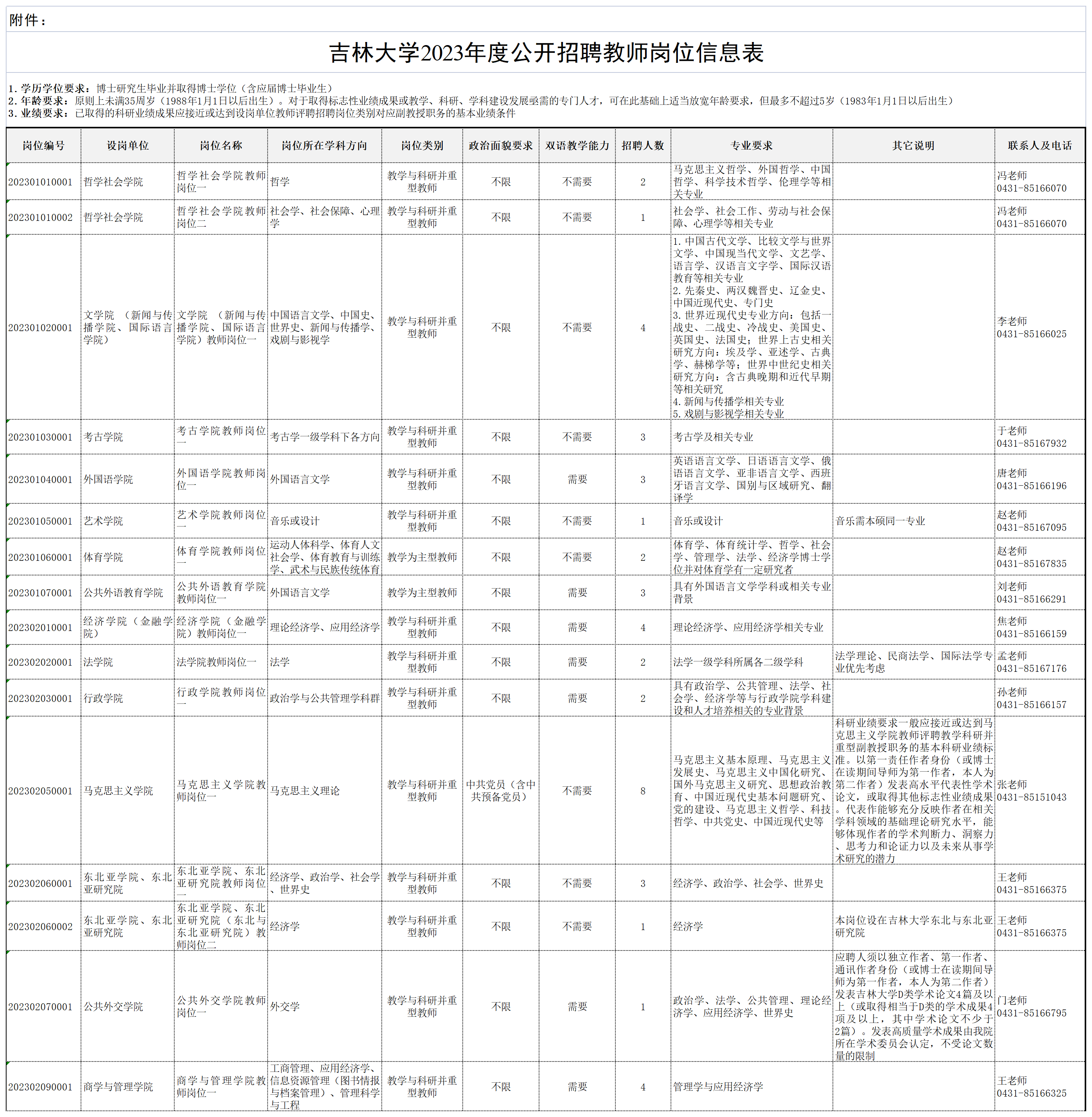 附件【附件:吉林大学2023年度公开招聘教师岗位信息表.xlsx】