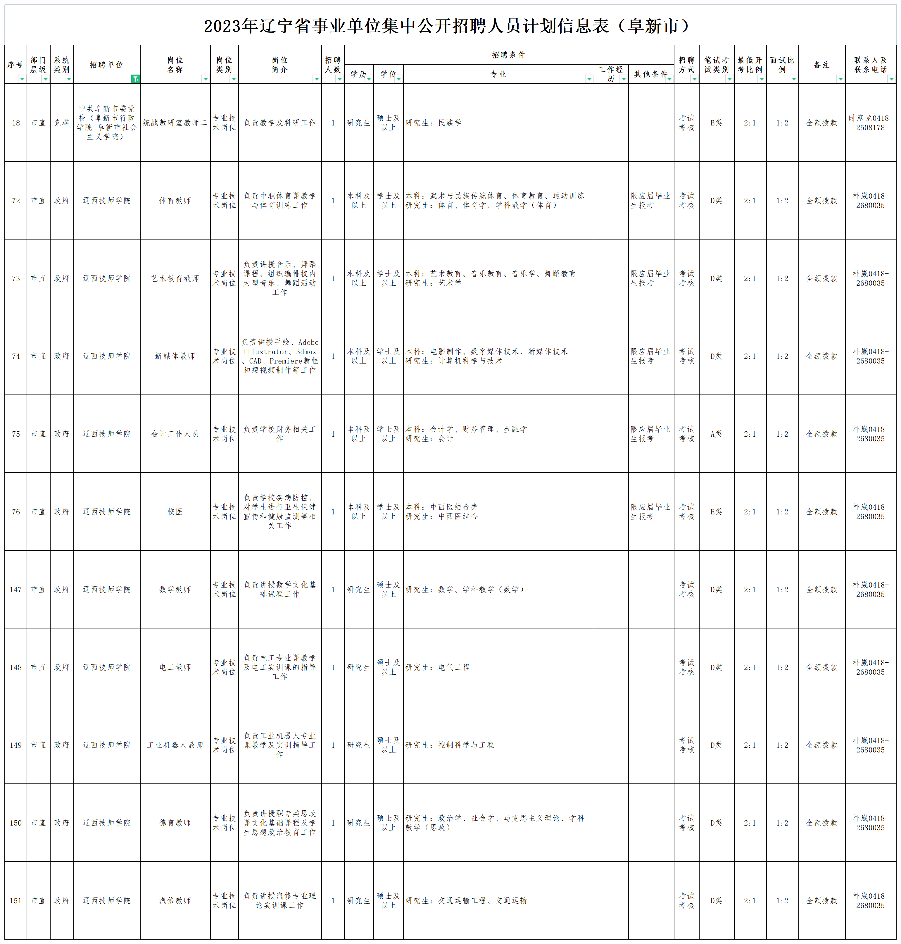 附件:1.辽宁省事业单位2023年集中面向社会公开招聘工作人员计划信息表